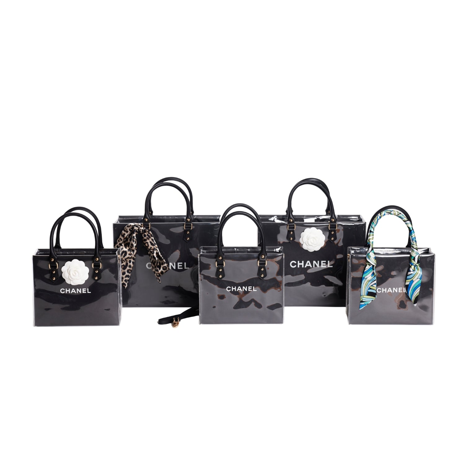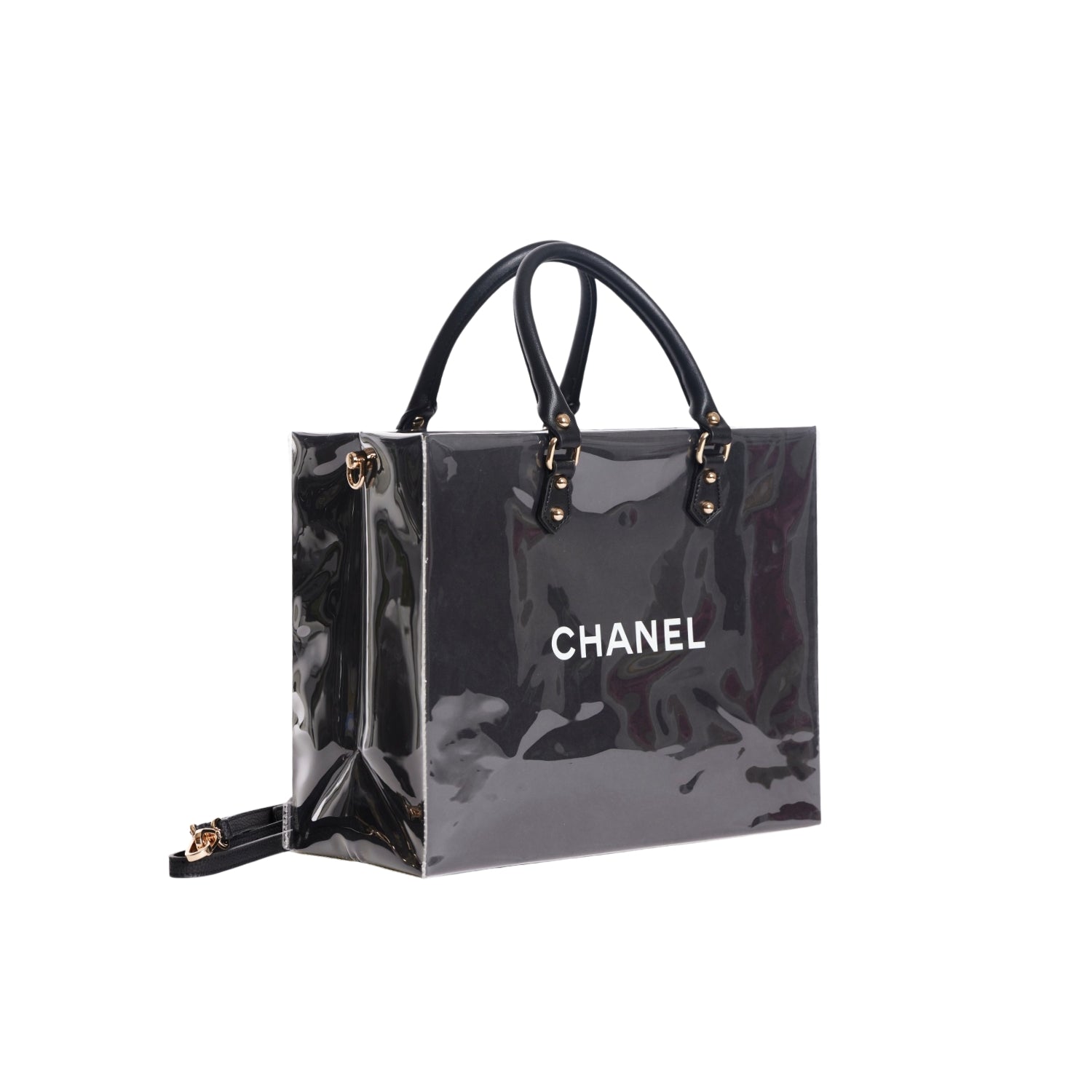 Chanel Clear Cover Designer Paper Bag w/ Crossbody Strap (Size B)